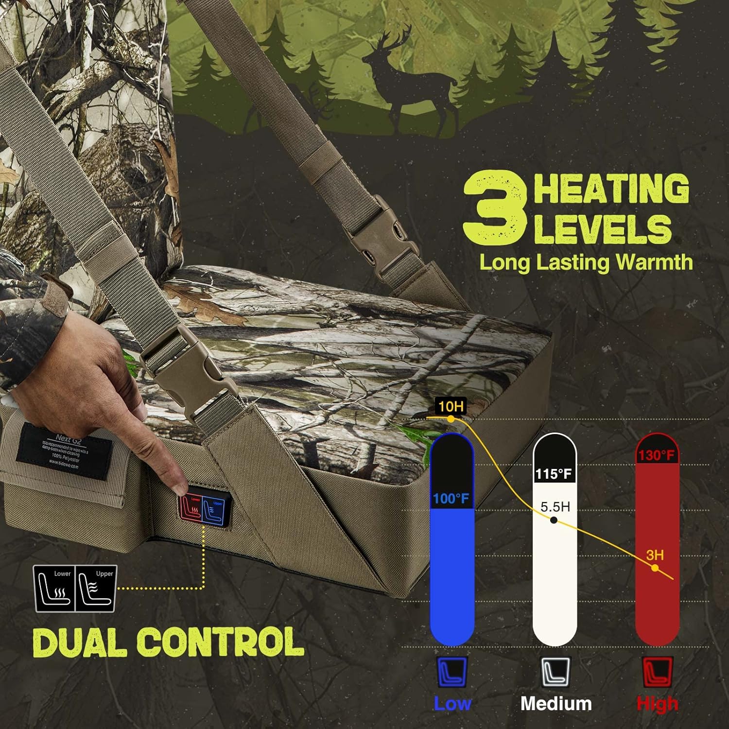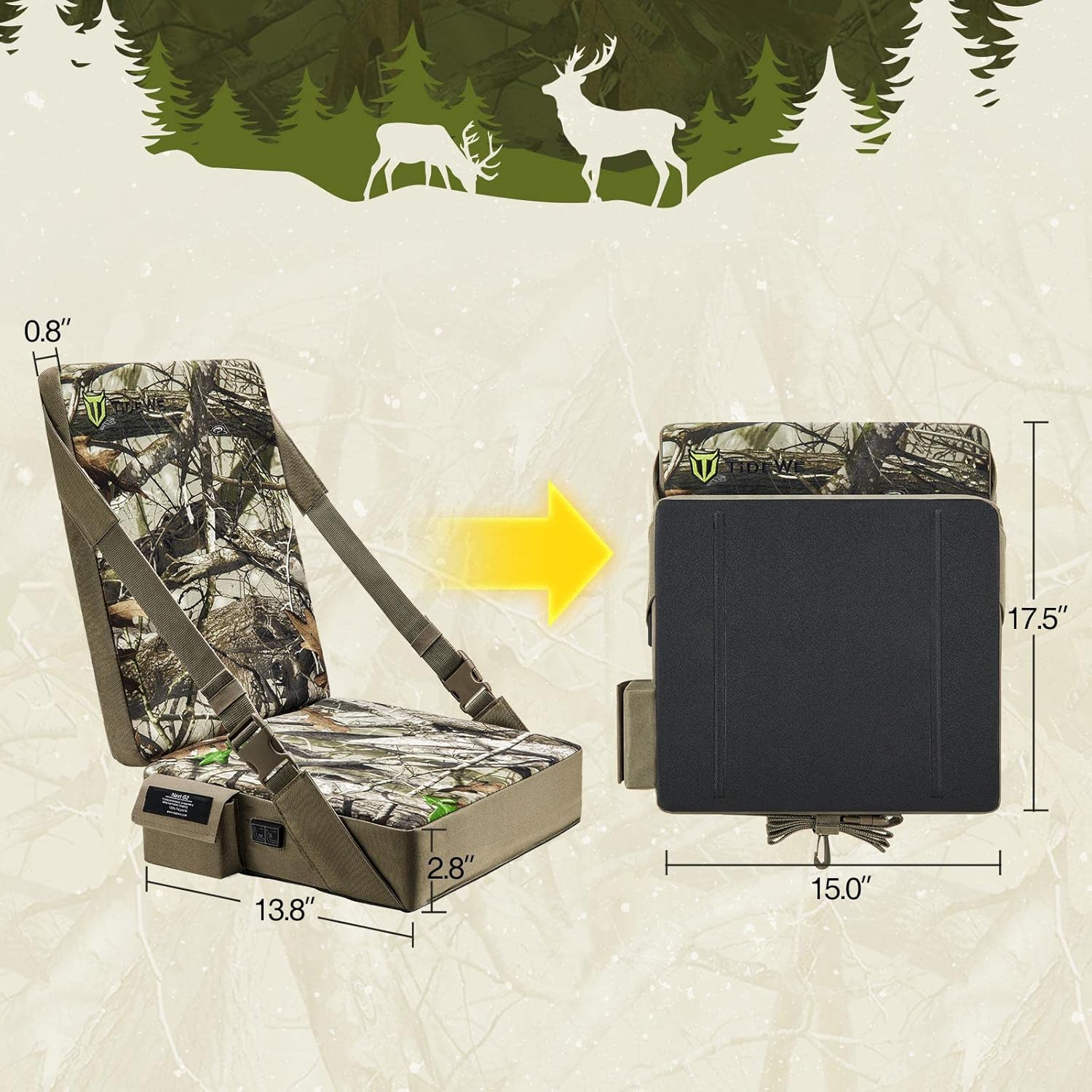 【Comfortable & Safe】The 3-inch thick high-density foam is soft and comfortable, helping you hunt longer. TIDEWE’s hunting cushion contains 1 10000mAh 5V battery pack with UL, FCC, RoHS, CE certification. Keep you warm and safe at the same time.